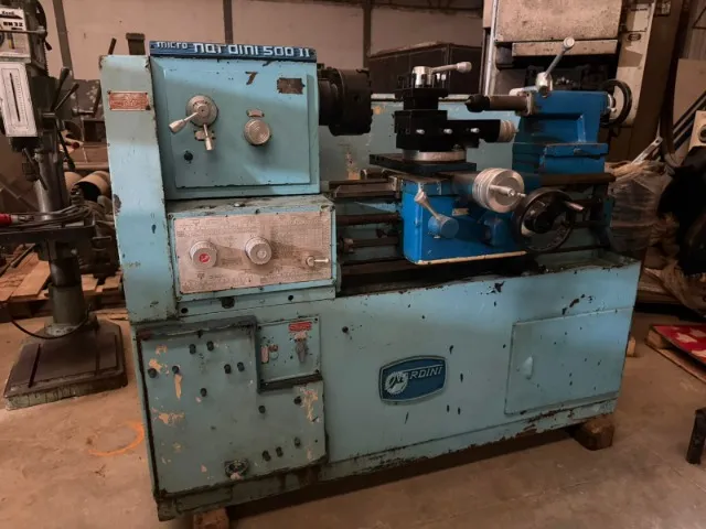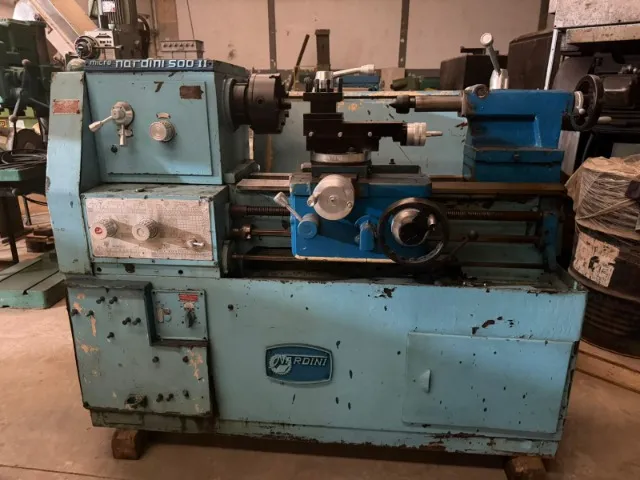 Torno Mecânico Nardini Micro 500 II, máquina robusta e muito procurada para usinagem geral (eixos, buchas, roscas, manutenção e ferramentaria). Conjunto completo com cabeçote, carro transversal/longitudinal, contraponto e porta-ferramentas (como nas fotos). Pode ser testado/inspecionado no local. Especificações (conforme anúncios de referência – confirmar na placa da máquina): Modelo: Nardini Micro 500 II Barramento: 500 mm Passagem sobre o carro: 250 mm Furo do eixo-árvore: 40 mm Rotação máx.: 1400 rpm Condição: Usado, com marcas de uso/pintura (ver fotos). Retirada/Transporte: por conta do comprador (posso ajudar a carregar conforme combinado).